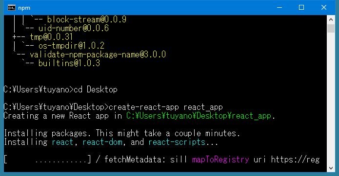 では、実際にReactのアプリケーションを作ってみましょう。コマンドプロンプトあるいはターミナルを開き、cdで適当な場所に移動して下さい。そして、以下のようにコマンドを実行しましょう。