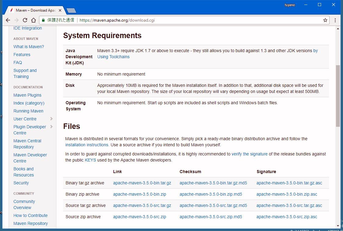 では、Mavenを準備しましょう。Mavenは、以下のサイトで公開されています。
