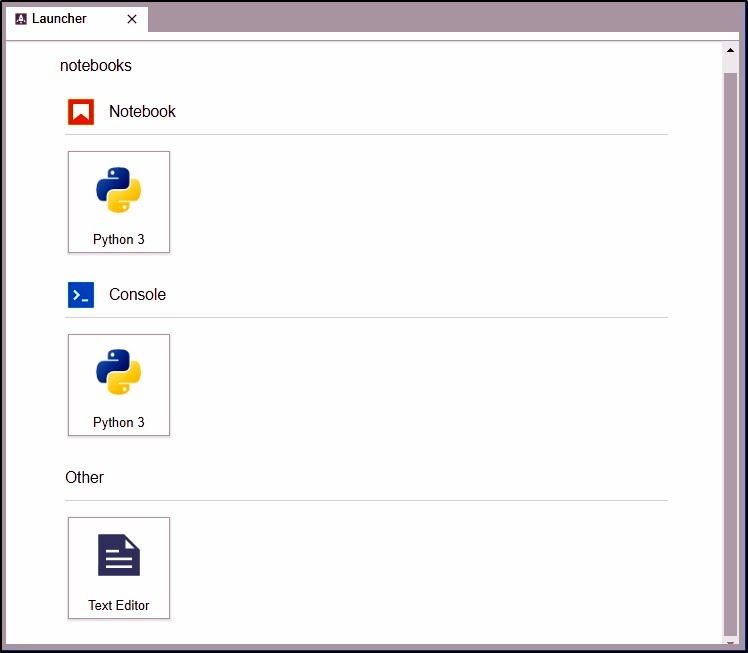 それぞれの項目では、実際に作成できる項目がアイコンとして用意されています。デフォルトでは「Python 3」と「Text File」しか用意されていませんが、これで新たなノートブックを作成したり、テキストデータを編集したりできます。