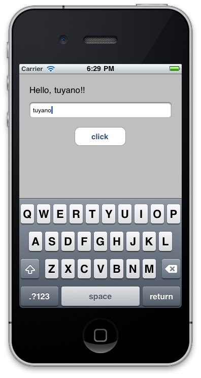 id str = [field1 text];textはUITextFieldに記述されているテキストをNSStringとして取得するものです。これで書かれたテキストを変数に取り出します。