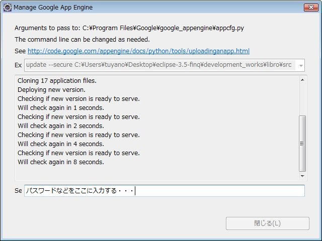 ここで、ログインするためのメールアドレス(Gmailのアドレス)と、パスワードを順に尋ねてくるので、それぞれ入力してやります。これでしばらく待っていると、アップロードが完了します。ブラウザを開き、