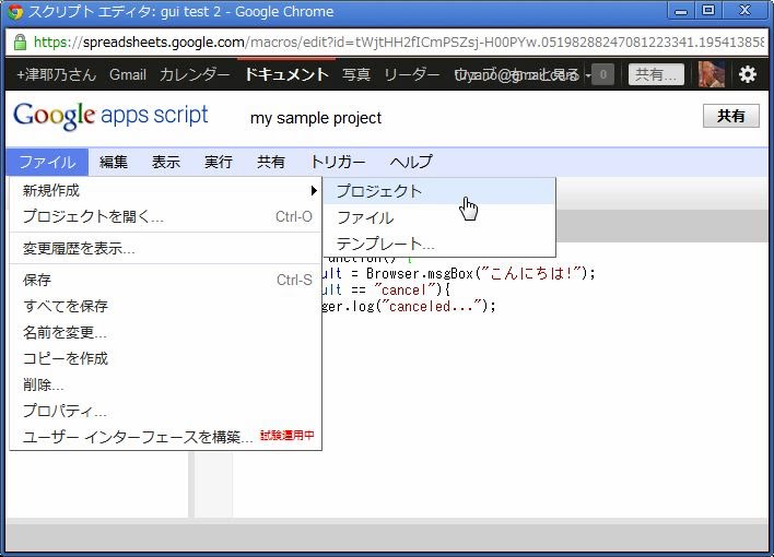 2011年8月より、スクリプトエディタには「プロジェクト」という機能が追加されました。