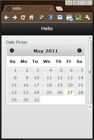 <div id="datepicker">Date Picker</div>何の変哲もない、ただの<div>タグですね。これ自体は、特別なものは何もありません。重要なのは、その後にある<script>タグです。