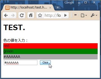 var element = $('<div></div>').text(str).css('background',str);$関数の後に、text、cssといったメソッドが連なっています。これは「メソッドチェーン」と呼ばれるものです。jQueryでは、$関数やjQueryオブジェクトのメソッドは、呼び出すとそのjQueryオブジェクト自身を返すようになっています。これにより、jQueryオブジェクトのメソッドを次々と連続して呼び出していくことが可能になっているのです。※リストが表示されない場合