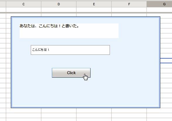 var txt = e.parameter[e.parameter.source];引数のオブジェクトでは、イベントが発生したコンポーネント名が「e.parameter.source」として渡されます。そしてコンポーネントの値は、「e.parameter[コンポーネント名]」という形で渡されます。つまり、e.parameter.sourceで得られたコンポーネント名を使い、e.parameterからコンポーネント名の値を取り出せば、入力されたテキストが取り出せる、というわけです。