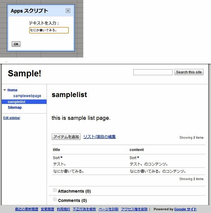 var site = SitesApp.getSite("example.com","mysamplesite"); // ドメインは修正!
