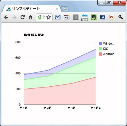 変数 =【オブジェクト】.setStacked();各列の値を別々ではなく積み上げる形で表示します。引数はなく、これを呼び出せば自動的に積み上げ式に変わります。