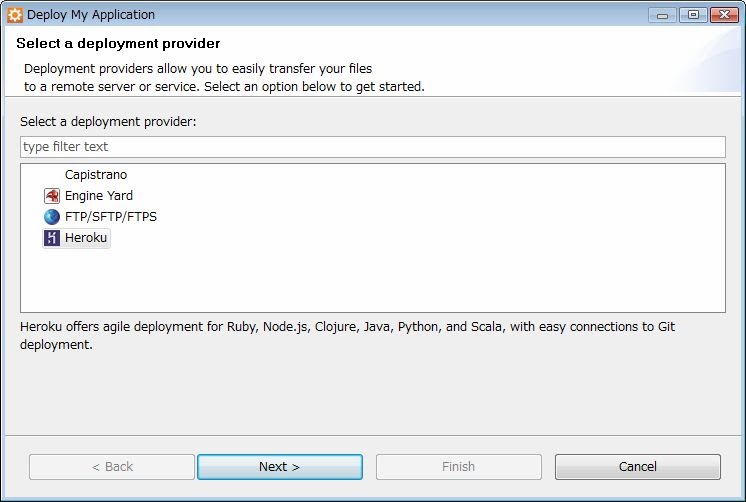 Heroku」を選び、「Next」ボタンで次に進みます。