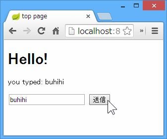 @RequestMapping(value="/",method=RequestMethod.GET)こんな具合に書かれています。単にマッピングするアドレスを指定するだけなら、その値を書くだけですんだのですが、今回はGET/POSTのメソッドの指定も必要となったため、引数が2つに増えました。