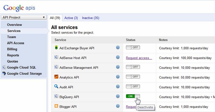 BigQuery APIが使えるようになります。「