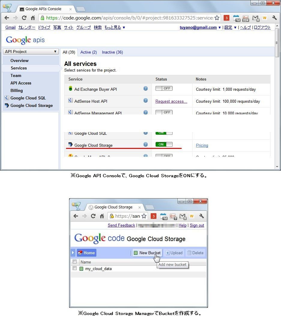 Google Cloud StorageはAPIを使って
