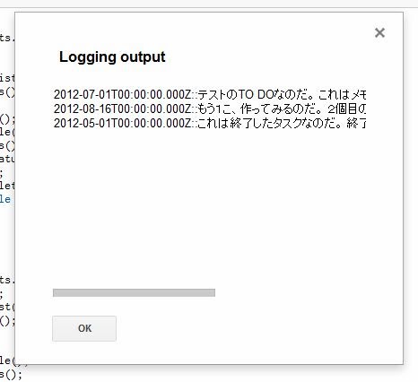 Logger.log(due + "::" + title + " " + note + " [" + status + "]" + comp);