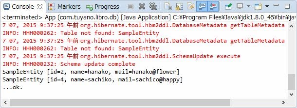 manager.remove(entity);エンティティを削除します。これはEntityManagerの「remove」メソッドを使います。引数に、データベースから取り出したエンティティのインスタンスを指定すると、それをデータベースから取り除きます。manager.flush();最後にEntityManagerをflushし、EntityTransactionをcommitすれば、データベースの更新が完了し、データが削除されます。――いかがですか。エンティティの更新がわかれば、削除もほぼ同じ感覚で行えるでしょう?