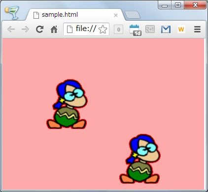 《Sprite》.addEventListener(enchant.Event.ENTER_FRAME, function(){……});フレームを切り替える時に発生するイベントです。正確には、切り替えの直前に呼び出されます。このイベント発生時に必要な処理を行うことで、フレーム切り替えごとに表示を変更することができるわけです。char1.addEventListener(enchant.Event.ENTER_FRAME, function(){